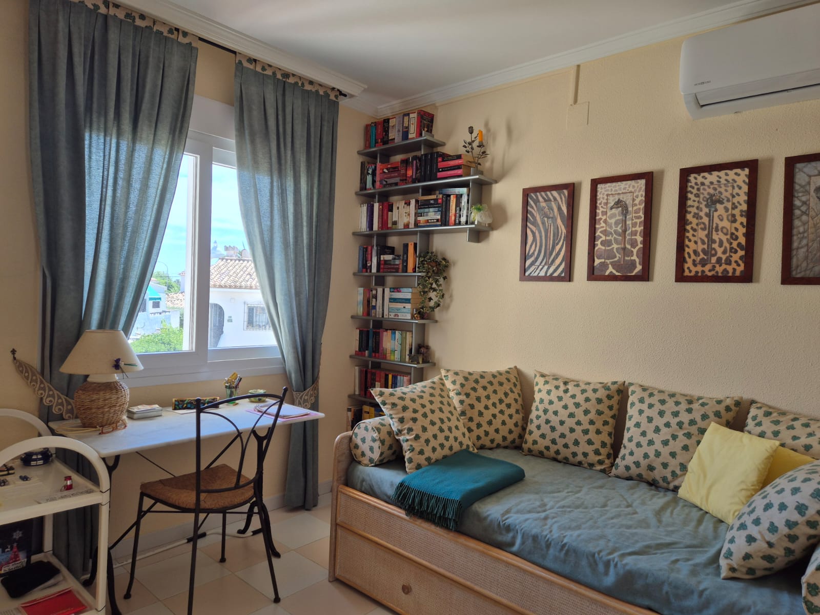 Este bonito dúplex con piscina comunitaria se encuentra a tan solo 150 metros de la playa de Las Marinas y a 2 km del centro de Dénia. La urbanización en la que se encuentra dispone de una zona de césped con plantas y arboles.