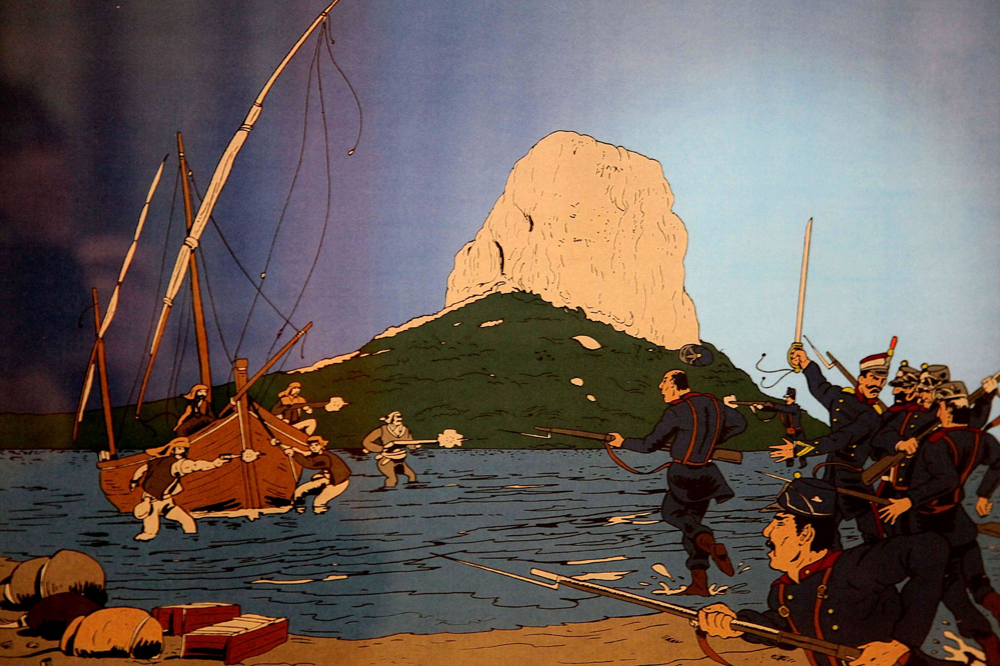Neben diesen außergewöhnlichen Ereignissen bezieht sich ein weiteres Werk von Jaén auf etwas Triviales: den üblichen Schmuggel an der Küste der Region. Der häufigste Ort war Calp, in der Gegend um den Penyal d’Ifac, der auf diese Weise in der Ausstellung dargestellt wird.