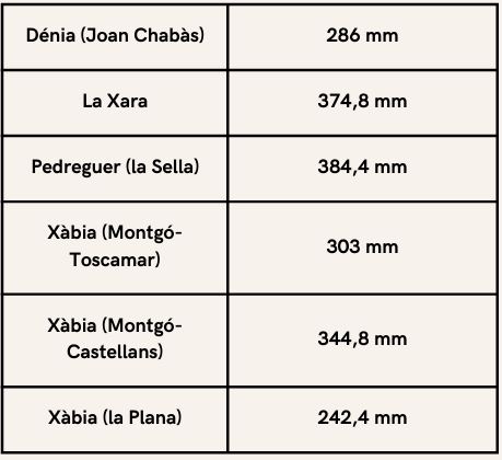 Aufzeichnungen für das Jahr 2023 an den Avamet-Stationen im Montgó und seiner Umgebung.