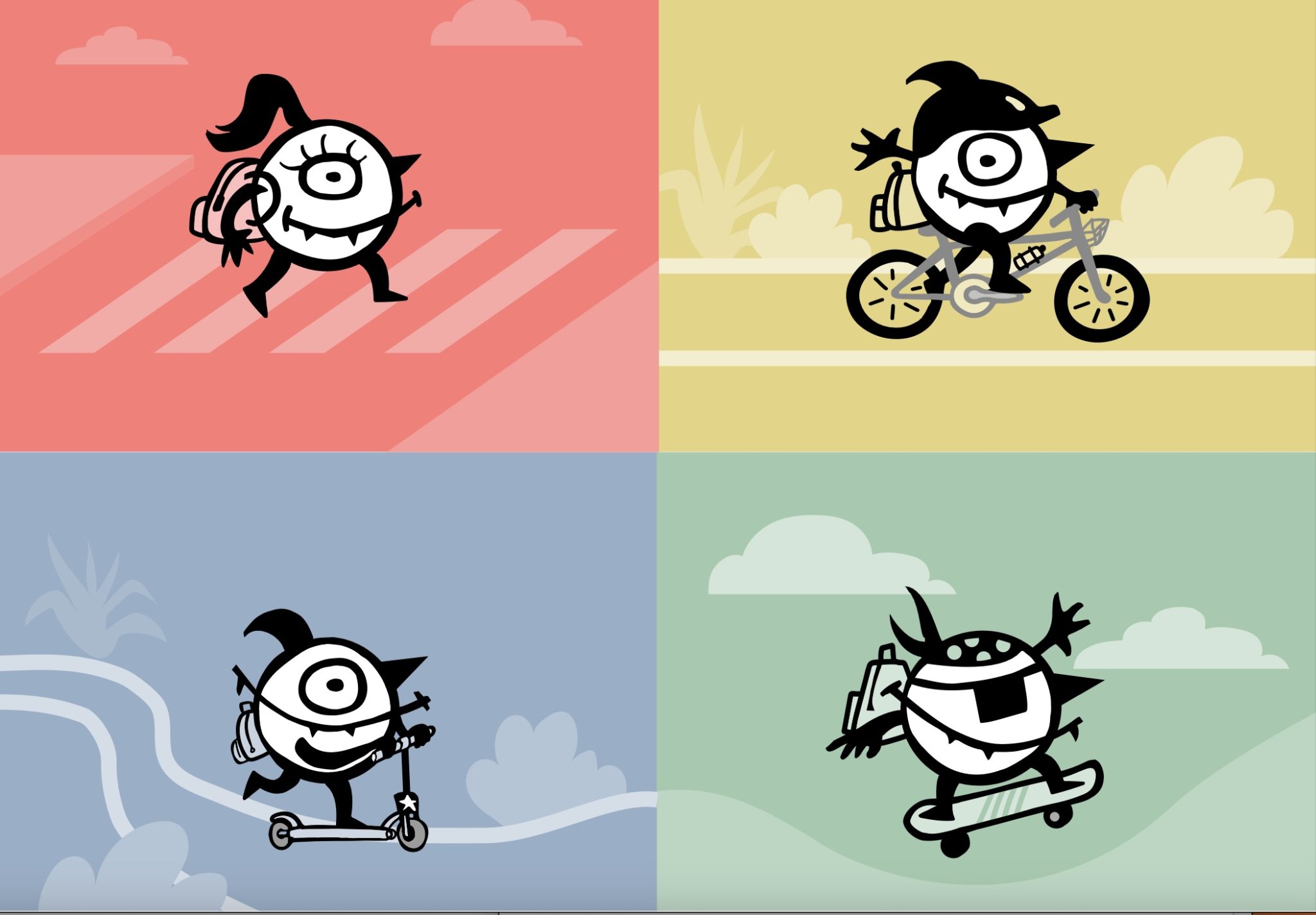 Die verschiedenen Farben des durch das Projekt geförderten nachhaltigen Verkehrs.