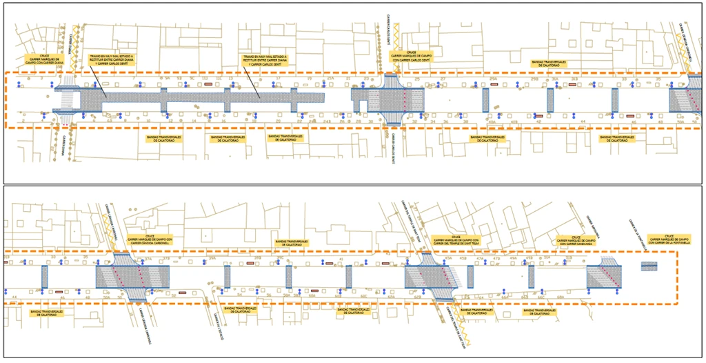 Die Arbeiten werden vier Monate dauern und zielen darauf ab, die Pflasterung und den Asphalt an den Kreuzungen des Marqués de Campo mit anderen Straßen und in anderen beschädigten Abschnitten zu ersetzen.