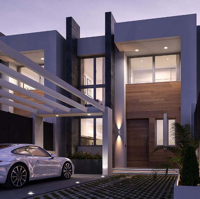 Promoción de adosados junto al centro comercial de SEGARIA en El Vergel (Alicante). Se trata de adosados independientes, cada uno tiene su plaza de parking delantera y su jardín trasero independiente con piscina propia. Tomas de agua y luz exteriores. Zonas de Terraza cubierta y descubierta.